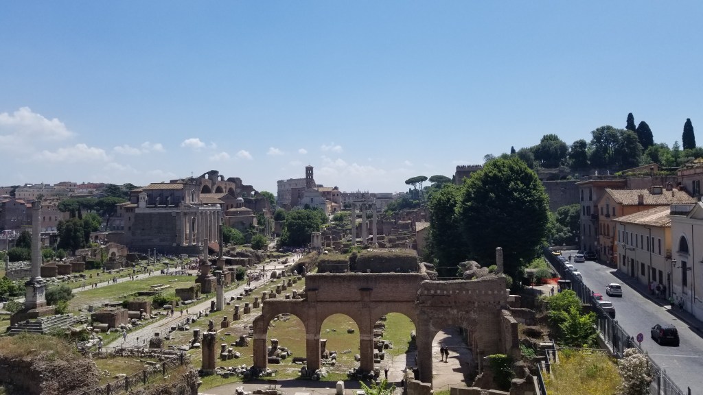 This trip wasn’t fully planned out before going. We had an idea of the things we wanted to do, but nothing booked too far ahead. No city trip is complete without me taking a Hop on Hop off bus tour. Rome at night was pretty magical. We also visited the Vatican, Colosseum, Trevi Fountain, Spanish Steps, Pantheon and the Roman Forum. We had booked a walking tour through Viator. The woman who took us around was very knowledgeable. It was 900 degrees outside with hardly any shade, but somehow I am still alive to write about it. We booked a tour for the Colosseum because I had read that you get a faster entry when with a tour, and the lines were not short for the common folk. Thanks for the tip, Rick Steeves.