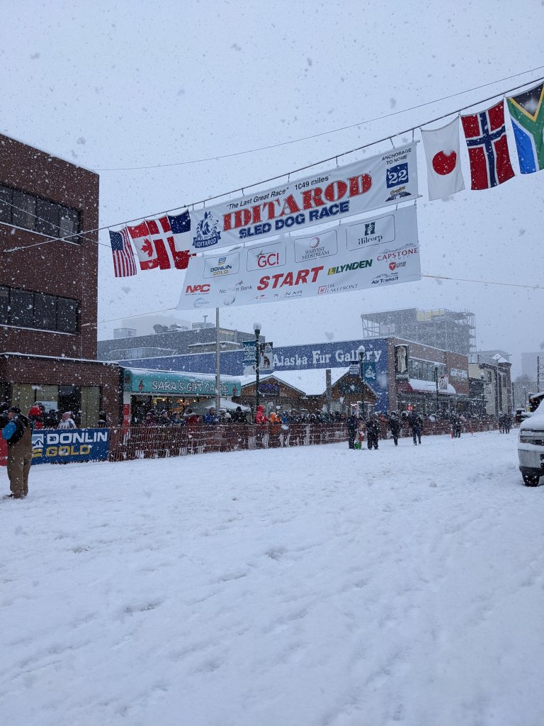 Race day started bright and early with TONS of snow falling from the sky. We walked up and down 4th Ave and some of the side street to see all the dogs and mushers. There were vendors and some food, but we decided to grab a prime spectating spot right at the start line and wait. Despite being absolutely dumped on with snow, we had excellent viewing and watched every single team head off on the trail. Next bucket list item will be to be an Iditarider which is an annual auction that benefits the race. The winners of the auctions (each musher has a seat to auction off) get to ride in the sled of the musher on ceremonial start day for the 11 mile trek through Anchorage. Winning bids are typically $1000+ with some going for $5000.