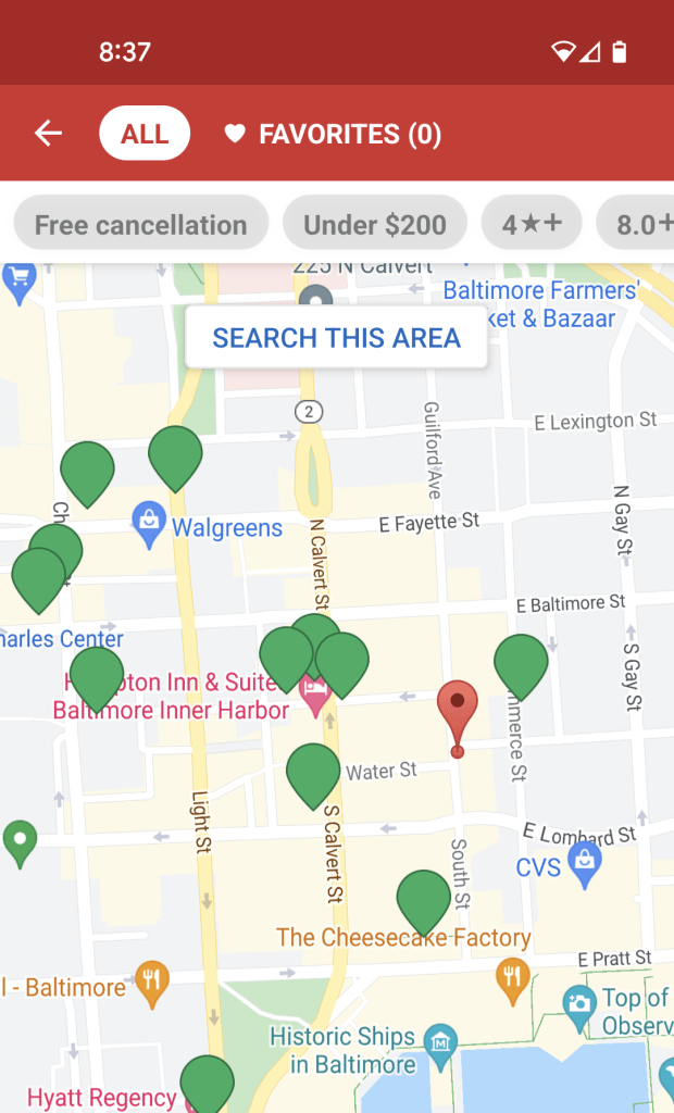 If there are no properties to my liking through Hyatt and Hilton, I then revert to Hotels.com. I like this website (let’s not forget to NEVER book “hotels.com vacations“) for a few different reasons. 1) Almost all properties have a free cancellation option. 2) You can earn free nights 3) I like to enter a point of interest then sort the hotels by distance. This is incredibly helpful for literally everywhere.