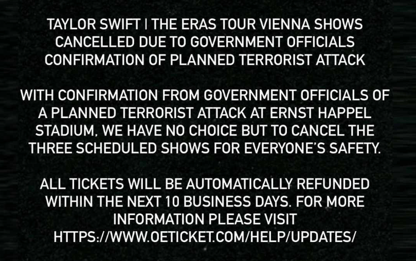 Hours before the show, the news started swirling. Terror threat. Increased police presence. Whispers of cancellation. And then… silence. Followed by the gut punch of an announcement: the show was officially off.